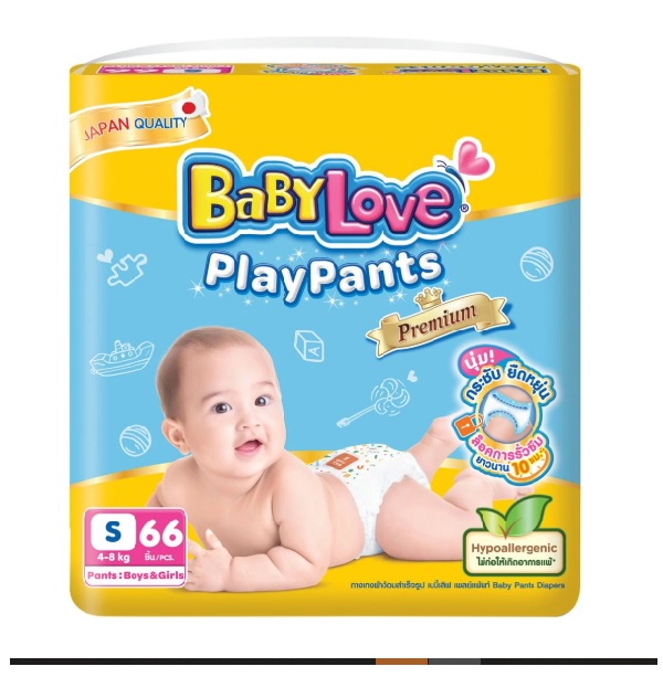 เบบี้เลิฟ เพลย์แพ้นท์ พรีเมี่ยม กางเกงผ้าอ้อม ขนาด S เหมาะสำหรับเด็ก 4-8 กก.น